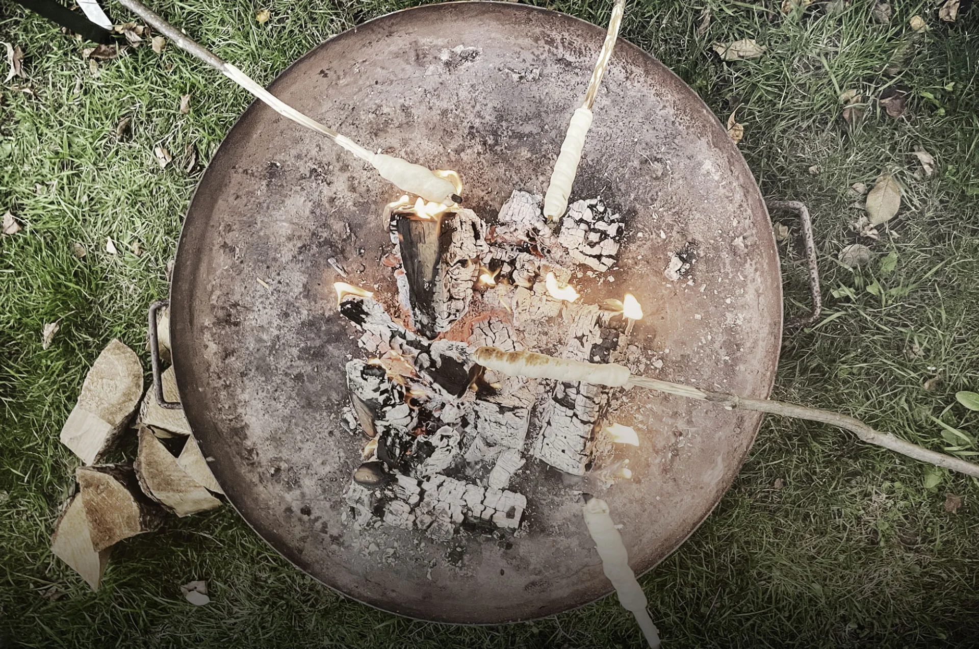 Feuer bereitmachen: Während der Teig ruht, zünde das Feuer an. Achte darauf, dass es sicher und kontrolliert brennt. Eine gute Glut ist ideal zum Backen des Stockbrots.